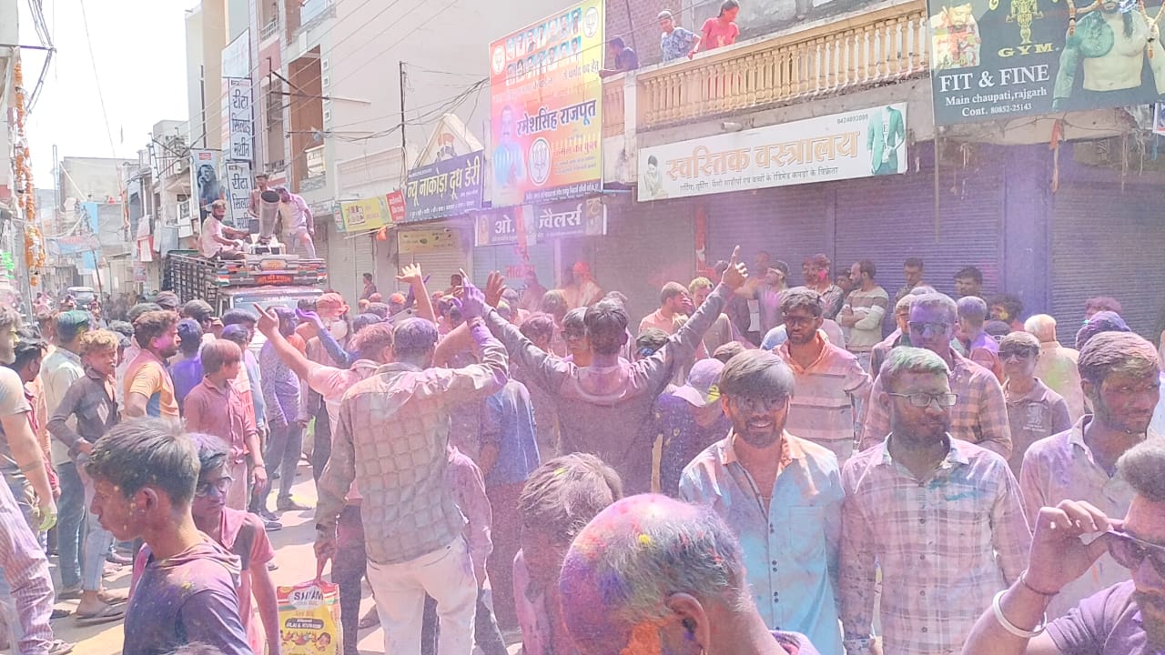 राजगढ़ . श्री राष्ट्रीय,राजपूत करणी सेना द्वारा रंग पंचमी पर फाग यात्रा का आयोजन किया गया जिसमें डीजे और तोप से होली खेली गई है यात्रा ओम गंगा महादेव तेजाजी मंदिर से 10:30 बजे से फाग यात्रा प्रारंभ की गई जो होली टेकरा से होते हुए महाराणा प्रताप द्वार से पुराना बस स्टैंड ,मैन चौपाटी तीन बत्ती चौराहा से होते हुए श्री राधाकृष्ण शेष शाही मंदिर से होली टेकरा पर समापन किया गया होली टेकरे पर युवाओं द्वारा डीजे पर नाचे झूमे और गुलाल लगाकर,एक दूसरे को गले लगाकर होली की बधाई दी और शुभकामनाएं दी गई वही पुलिस प्रशासन भी मुस्तैद नजर आई श्री क्षत्रिय राजपूत समाज का आभार श्री राष्ट्रीय राजपूत करणी सेना के सभी पदाधिकारी के द्वारा आभार व्यक्त किया