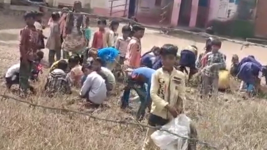 15 अगस्त की तैयारी के लिए बच्चों से साफ सफाई कराई गई मैदान मे बहुत गंदगी पसरी थी
